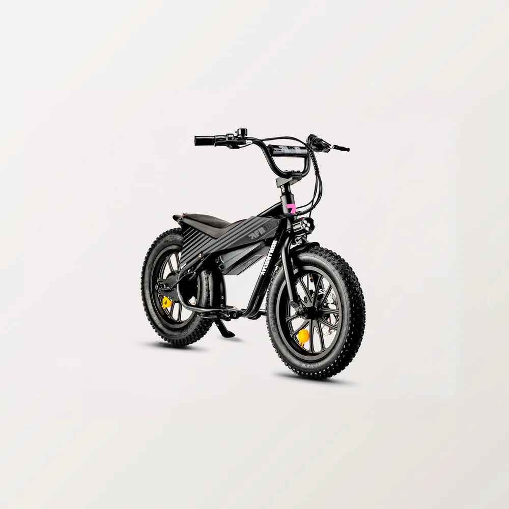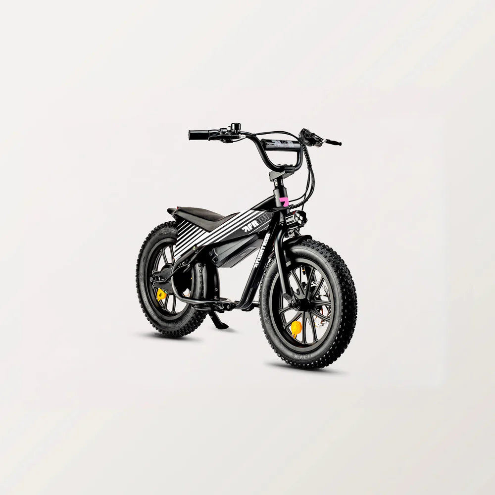With a 16” frame, disc brakes for reliable stopping power, and three speed levels for simple control, the FR101 is an ideal introduction to the Flight Risk lineup. Lightweight and easy to handle, it’s engineered to help young riders learn balance, coordination, and control — all while having a seriously good time.