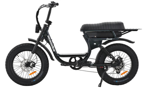 The Mamba Masai is a versatile electric bike built for comfort, practicality, and everyday reliability. Featuring a low-step-through frame, it’s designed to make mounting and dismounting effortless—perfect for a wider range of riders. Like its sibling the Kalahari, it boasts a powerful BAFANG motor, durable Samsung battery, and robust suspension. The Masai takes it further with dual rear shocks for enhanced stability and support, ensuring a smooth and confident ride across varying terrain.